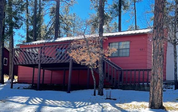 cabinets! Sits on 2 lots adjacent to Moon Mtn state land! Wood floors in primary bdrm w/abundance of space. View of forest, wildlife & Sierra Blanca! Great for a family or 2nd home right in the middle of Ruidoso! Close to many local restaurants & also close to the dog park & Ruidoso schools! #127938. $399,500.