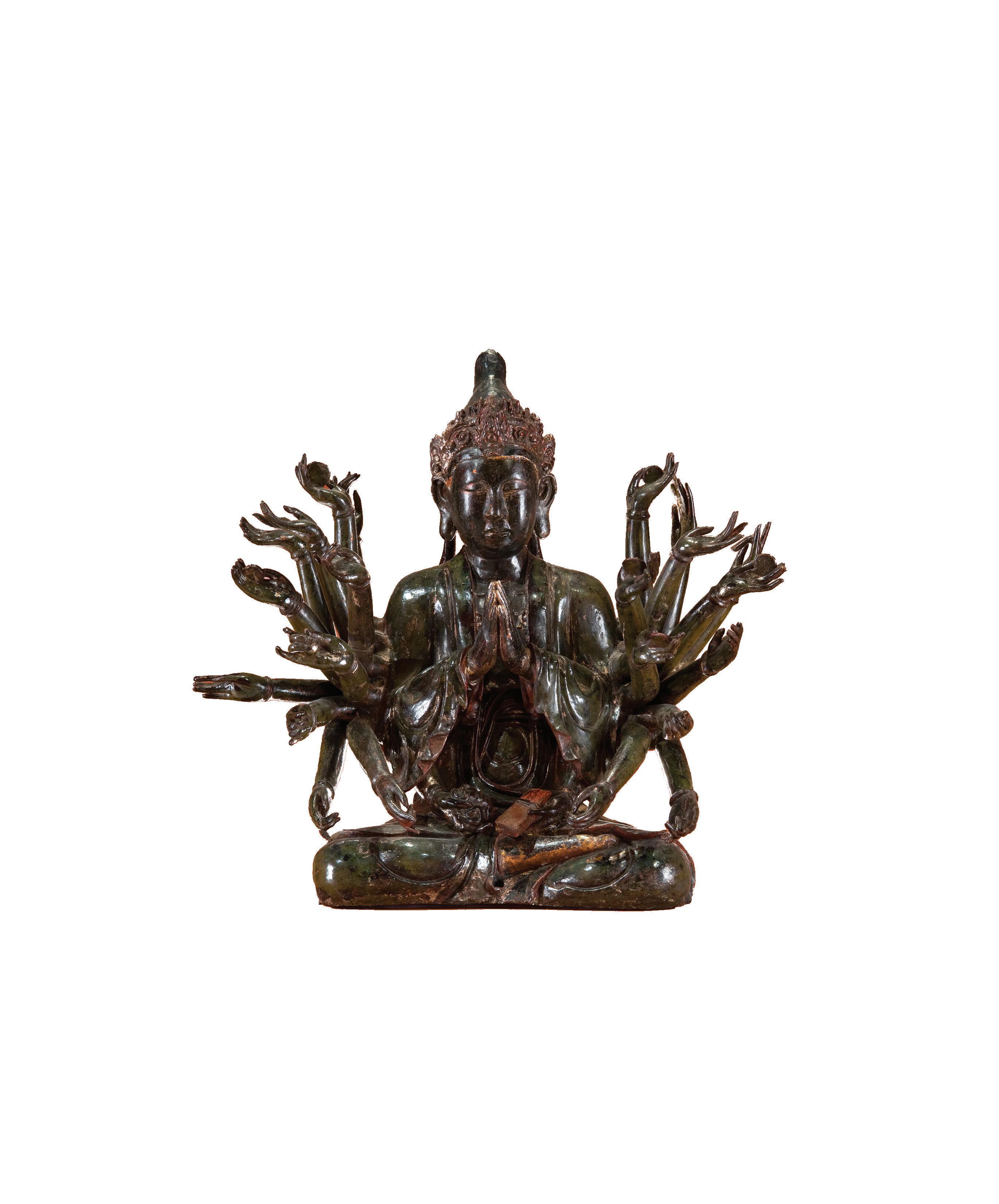 This sculpture represents the bodhisattva of compassion, Quán Th ế Âm (or Quán Âm). The deity is known as Avalokiteśvara, Quanyin, Kannon, and Gwaneum in Sanskrit, Chinese, Japanese, and Korean respectively. The figure is seated cross-legged and likely would have originally rested upon a lotus-shaped pedestal on a tiered base. The sculpture’s rounded facial features, its gently downcast eyes, and graceful pose convey a sense of calm and serenity. It is among one of the finest examples of its type in the United States.