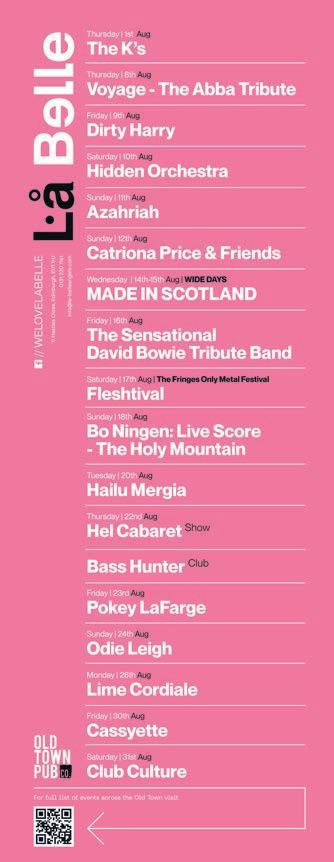 It’s another monster heads up for our August issue: four pages (four!!!) of gigs, Fringe shows, exhibitions, comedy hours, and a general nice time for your perusal.