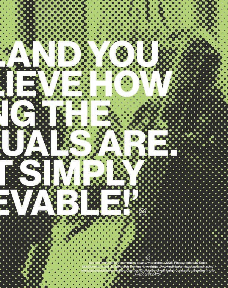 Art is excited about Edinburgh Art Festival – this month’s poster is by Rosie’s Disobedient Press and forms an extension of their work as part of the programme, exploring the archives of local organisations to look at language and words as a historical act of resistance. We’ve been working with EAF to recruit a cohort of emergent art critics, whose work you can see in the feature on Platform, with each writer paired with an artist from the emergent showcase. We take a look at some of the artists and collectives whose work deals with the most pressing crises of our time, and continue the celebration of Fruitmarket’s 50th birthday with a deep dive into their exhibition archives.