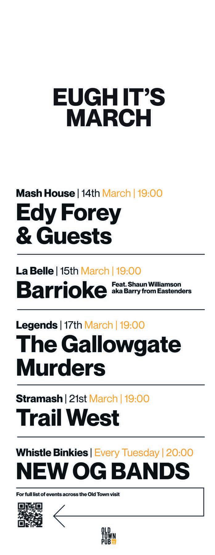 Design takes a trip to Fife for Hag, a craft exhibition responding to the area’s bloody history of witch trials. Food goes to Glasgow for some very good coffee in the East End’s Through the House. We close the magazine with a real curveball – The Skinny on… Shaun Williamson, that’s Barry from Eastenders to you and me, who’s provided us with a very brief insight into his preoccupation with the tax man as he prepares to roll into town with his much-anticipated BARRIOKE karaoke night.