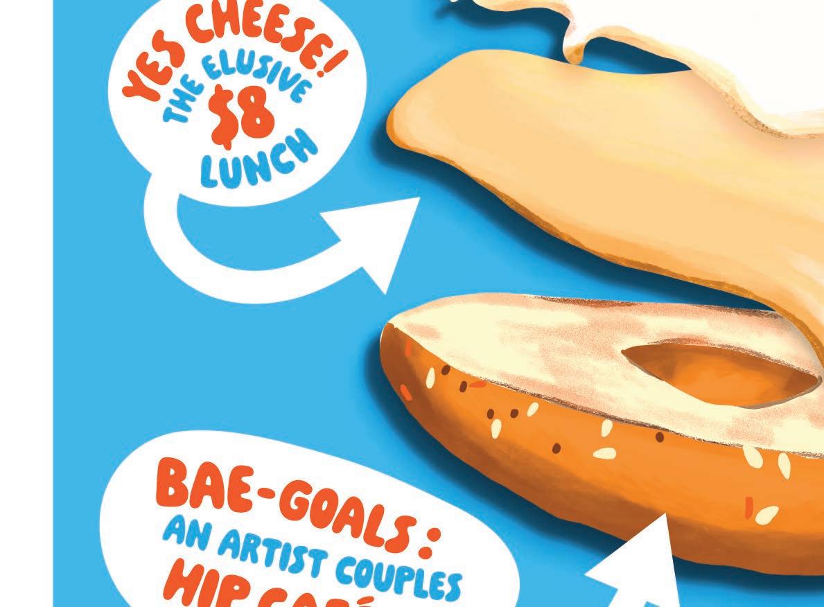 Illustration and design by Jennifer Galler. This deconstructed sandwich is zany, punny and a fun lighthearted approach to our 2023 Breakfast and Lunch Guide! Please enjoy!
