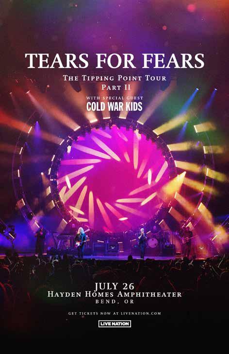 JULY 28 JULY 26 JULY 25 JULY 27 JULY 29 AUGUST 6 AUGUST 23 AUGUST 9 AUGUST 22 AUGUST 15 SAT. AUGUST 5 FRI. AUGUST 18 AUGUST 3 FRI. AUGUST 4 AUGUST 16 2023 CONCERT SEASON BOYGENIUS WITH CARLY RAE JEPSEN AND ILLUMINATI HOTTIES 7/30 • BON IVER WITH SID SRIRAM 8/12 • NOAH KAHAN 7/19 • DIERKS BENTLEY WITH JORDAN DAVIS AND KAMERON MARLOW 8/24 & 25 • REBELUTION WITH IRATION, THE EXPENDABLES, PASSAFIRE AND DJ MACKLE 8/26 SYLVAN ESSO WITH INDIGO DE SOUZA 8/27 • DAVE MATTHEWS BAND 8/29 • LINDSEY STIRLING WITH WALK OFF THE EARTH 9/2 GOO GOO DOLLS & O.A.R. 9/4 • RICK SPRINGFIELD WITH THE HOOTERS AND TOMMY TUTONE 9/7 • KIDZ BOP NEVER STOP LIVE TOUR 9/8 THE LUMINEERS WITH JAMES BAY 9/9 & 10 • JELLY ROLL WITH STRUGGLE JENNINGS, CAITLYNNE CURTIS AND JOSH ADAM MYERS 9/12 COUNTING CROWS WITH DASHBOARD CONFESSIONAL 9/14 GET TICKETS NOW AT BENDCONCERTS.COM, LIVENATION.COM AND IN PERSON AT THE TICKET MILL IN THE OLD MILL DISTRICT. FOLLOW @BENDCONCERTS