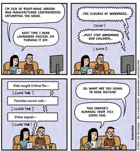 Amy Alkon, Rob Brezsney, Brendan Emmett Quigley, Jen Sorensen, Pearl Stark, Tom Tomorrow, Matt Wuerker