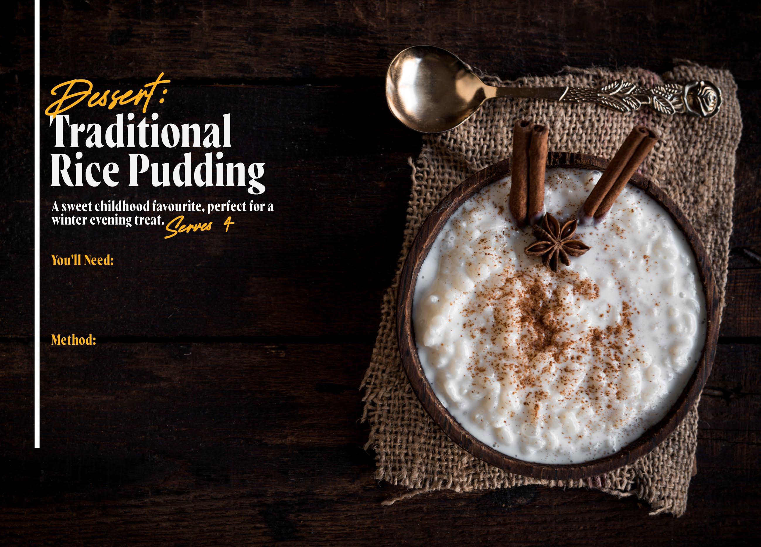 Heat oven to 150˚c conventional/130˚c fan/gas 2. Wash rice and drain. Grease an 850ml baking sheet, then tip in rice and sugar, stirring in the milk. Sprinkle cinnamon over the top. Cook for 2 hours, until the pudding only slightly wobbles in the centre. Serve with jam, fruit, or other sweet treats.