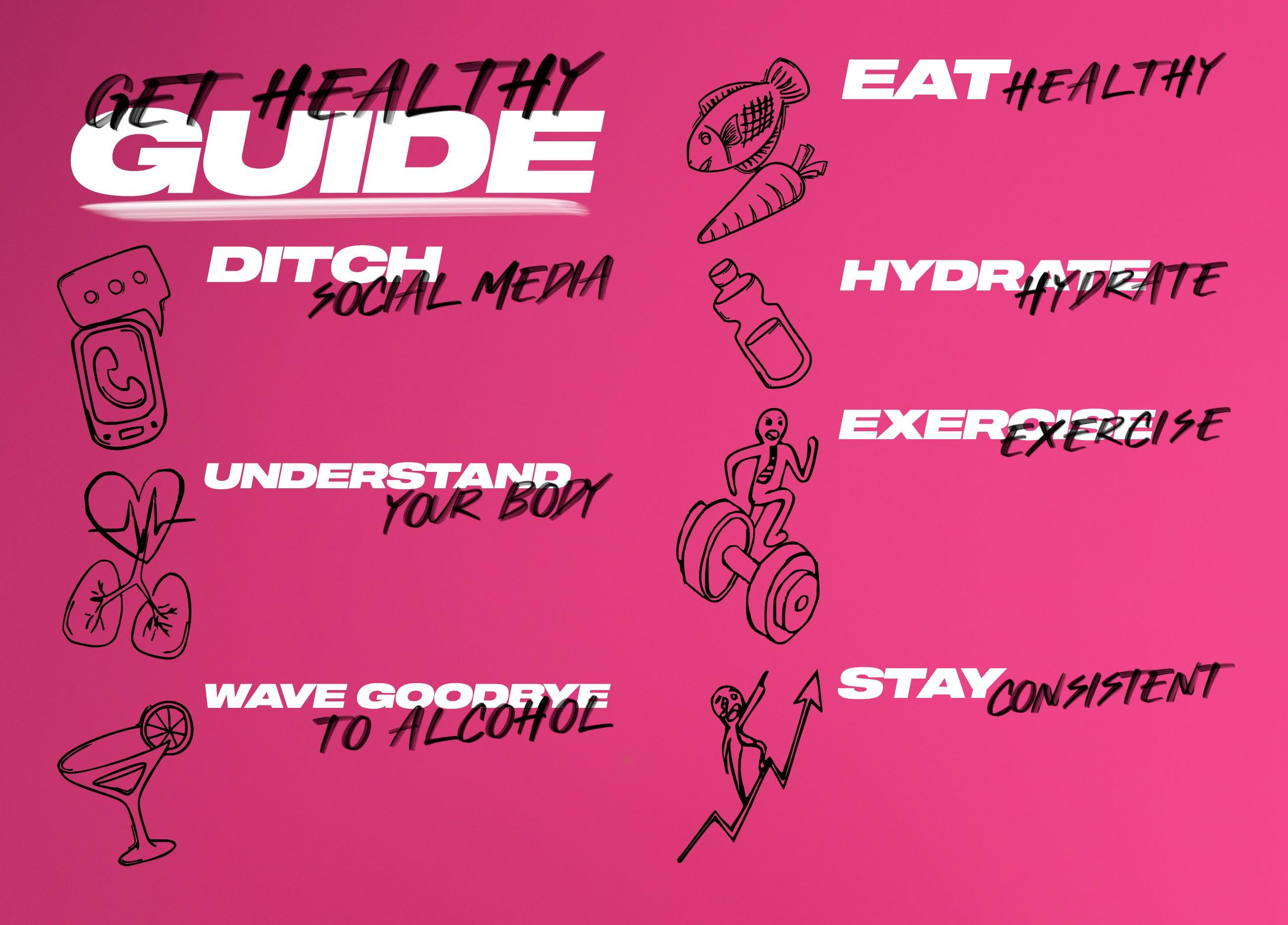 Now you’ve cut out the poison (and calories), make a conscious e ort to eat well. Eat enough fruit and vegetables and get your ve per day! Balance your diet with healthy foods so you are getting the daily recommended vitamins, minerals, oils, and overall nutrition. Think fruit, vegetables, beans, grain, sh, eggs, berries, etc.