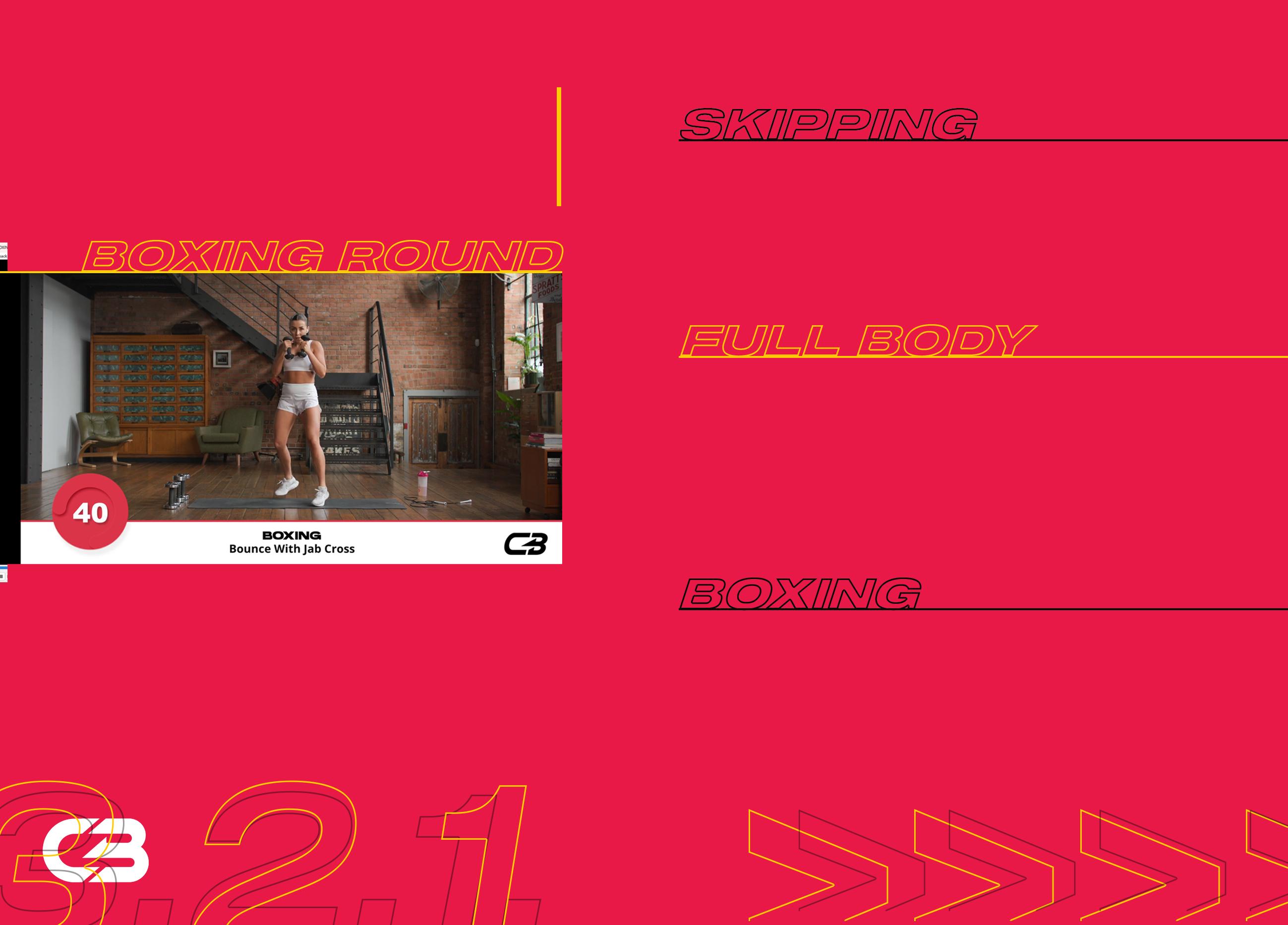 1. BASIC BOXER BOUNCE 2. BUTT KICKS SKIPPING – LIGHT ON YOUR FEET, AIM TO KICK YOUR BUM WITH YOUR FEET, PICK UP THE PACE! 3. SCISSOR FEET SKIPPING – KEEP LIGHT ON YOUR TOES 4. SIDE TO SIDE BOXER BOUNCE – LIGHT ON YOUR TOES, LOOSE THROUGH YOUR WRISTS, NEARLY THERE!