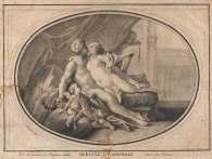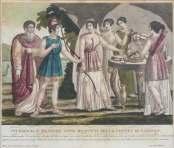 TELEMACO E MENTORE NELLA GROTTA DI CALYPSO VENERE COMPAGNA AMORE NELL’ISOLA DI CALYPSO Coppia di stampe colorate, cm. 24 x 28