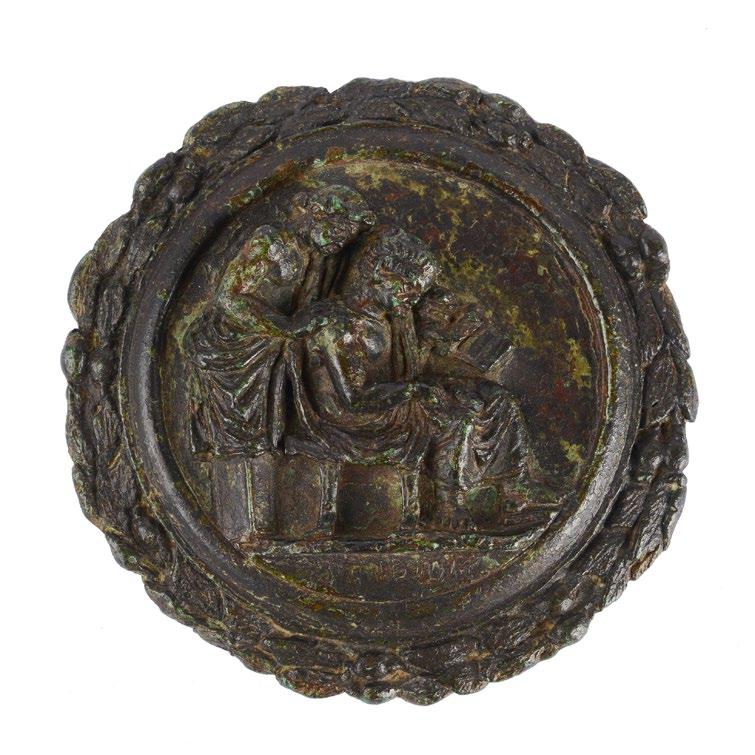 placca in bronzo, in rilievo con figure. cm. 8,5.