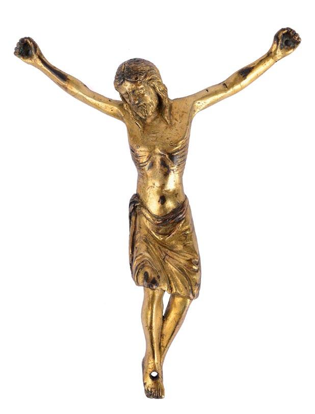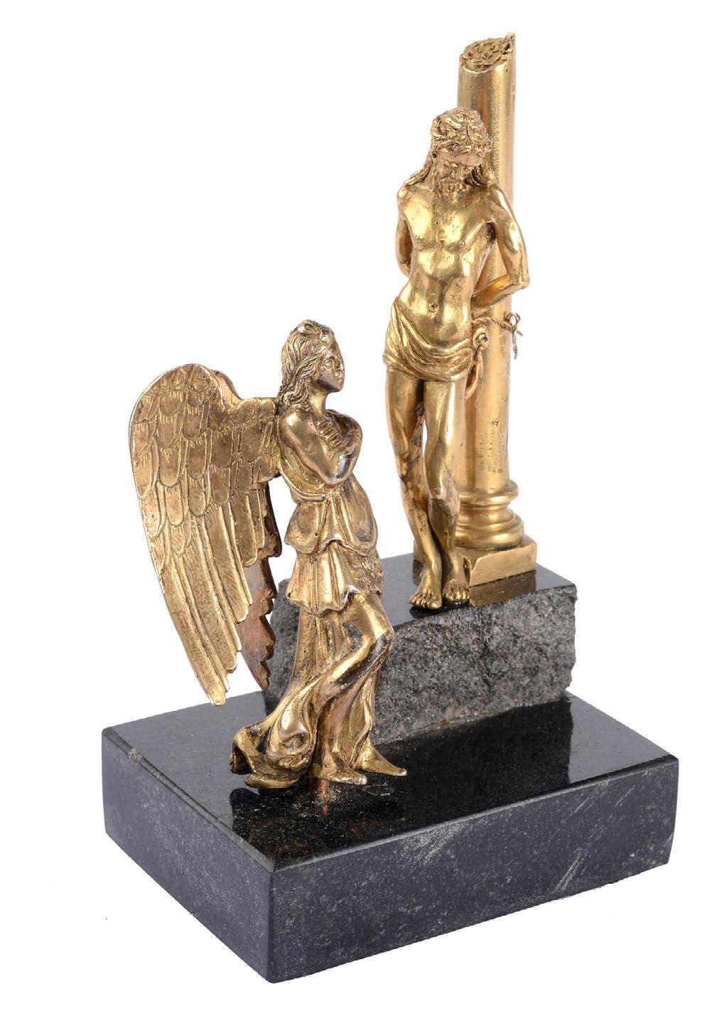 CRISTO ALLA COLONNA CON ANGELO Gruppo in bronzo dorato. cm. 7 (Angelo); cm. 10 (Cristo alla colonna).