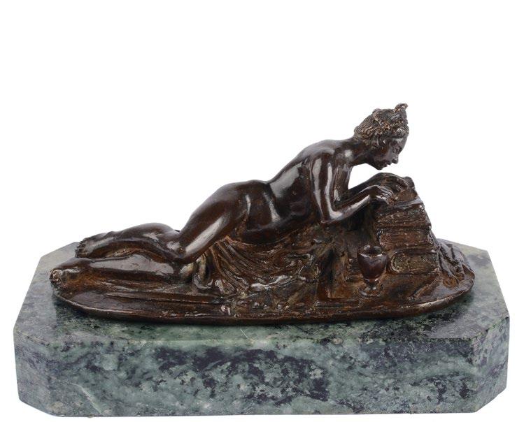 ALLEGORIA DELLE ARTI Scultura in bronzo su base in marmo verde. cm. 4x11x6.
