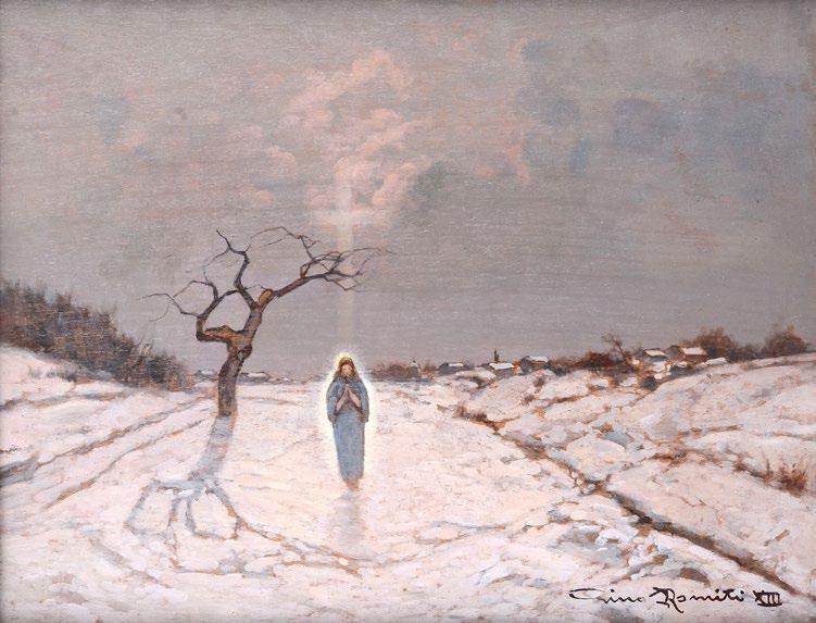 Firma in basso a destra. Sul verso: dichiarazione di autenticità di Carlo Fornara, in data 11 marzo 1925; etichetta Galleria Annunciata, Milano, con dati dell’opera; cartiglio manoscritto “Provenienza/Coll- Fornara/Mazzotta/da: Galleria Annunciata/Via Manzoni/Mi.”