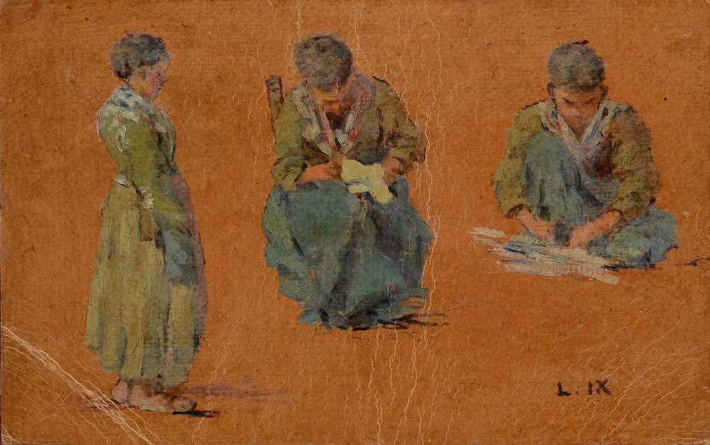 Firma in basso a destra. Sul verso: sul cartone di chiusura, a matita “Piccoli studi di figura del celebre/pittore Luigi Nono di Venezia”.