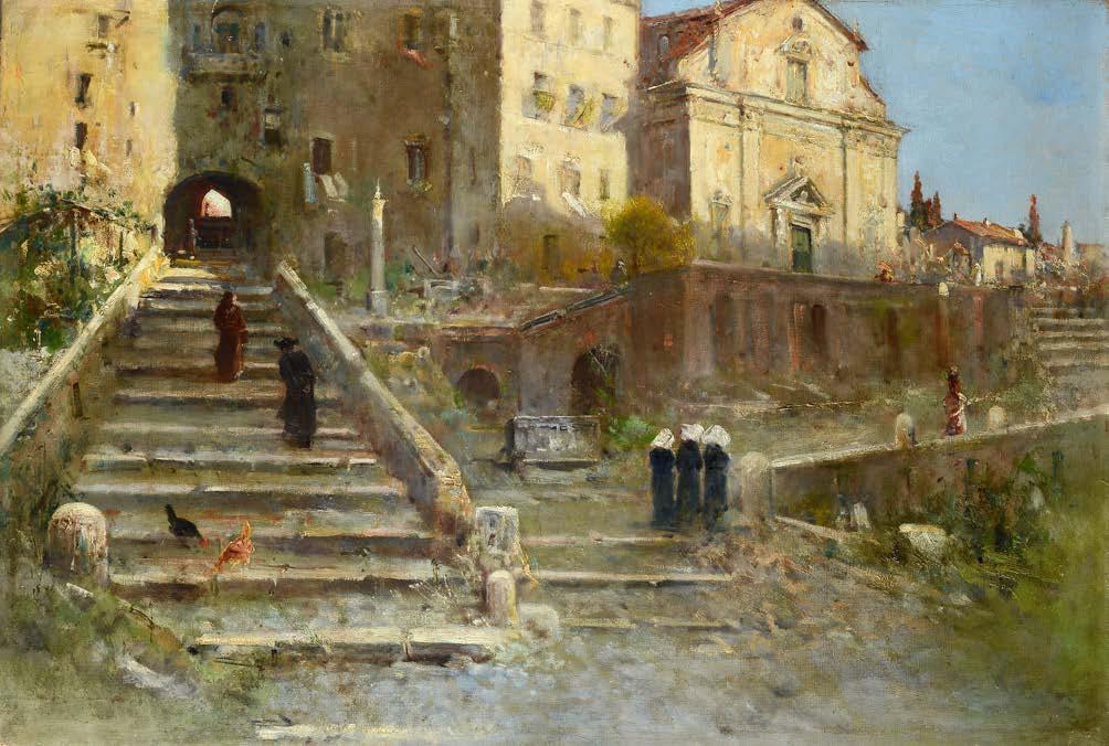PAESAGGIO CON SCORCIO DI CHIESA E FIGURE