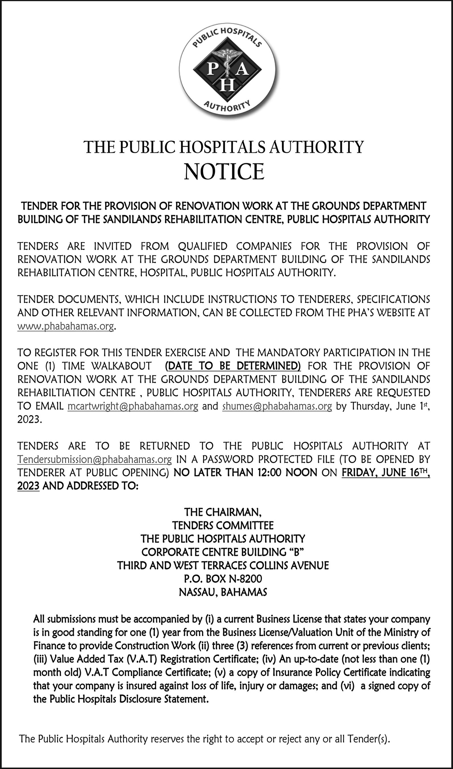 “Upon our election to office, Cabinet approval was sought and granted to reengage the contractors to complete the work on these clinics. Financing through the Inter-American Development Bank will be utilised to carry out much needed healthcare infrastructure upgrades throughout our Family Islands.”