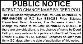 NOTICE is hereby given that MAKINSON GULES, Eleuthera Governors Harbour, The Bahamas applying to the Minister responsible for Nationality and Citizenship, for Registration Naturalization as a citizen of The Bahamas, and that any person who knows any reason why registration/naturalization should not be granted, should send a written and signed statement of the facts within twenty-eight days from the 15th day of May 2023 to the Minister responsible for nationality and Citizenship, P.O. Box N-7147, Nassau, New Providence, The Bahamas.