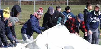 The dome spans 388 feet in length, a sanctuary of space for winter athletes and community members seeking refuge from the chill. Inside, a mild 0.35 psi pressure— less than a hundredth of what a car tire holds—breathes life into the structure. It’s a gentle reminder that it is not pressure, but the lightest touch of communal spirit that upholds our greatest achievements. There is no measure of the number of faculty and staff who come down to the Dome to help out, but we do know that 406 athletes spent a combined 600-plus hours helping. I don’t want to belabor that point, but that 600-plus hours in a day is the equivalent of a crew of 75 laborers putting in an 8-hour day. That does not consider the prep work that was done in the days leading up to the Dome coming down.