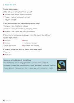 There are different departments in the shop: World Craft, Fair Trade Foods, Books and Magazines, World Music, and Household Goods. In the Fair Trade Foods department you can buy tea, dried fruit, organic forest honey and organic chocolate. The World Music department stocks a good range of CDs by musicians from around the world. The World Shop includes a bookshop with books on international subjects.