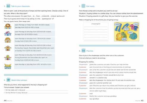 The other one answers: It is open from ... to ... from ... o’clock till ... o’clock, (and so on) Then try to guess which shop it is by asking: Is it the ... (greengrocer´s)?