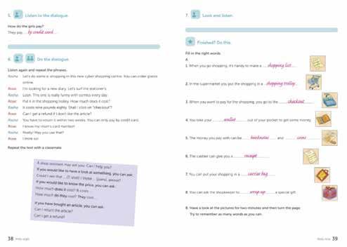 shopping centre winkelcentrum shop window etalage size maat special offer aanbieding stationer’s kantoor boekhandel to carry dragen to fit passen to forget vergeten to get a refund geld terugkrijgen to order bestellen to pay by credit card met een credit kaart betalen to pay cash contant betalen to return terugbrengen (van goederen) to sell verkopen to show tonen, laten zien to spend besteden/ uitgeven aan to try on aanpassen to wrap up inpakken toy shop speelgoedwinkel wallet portemonnee