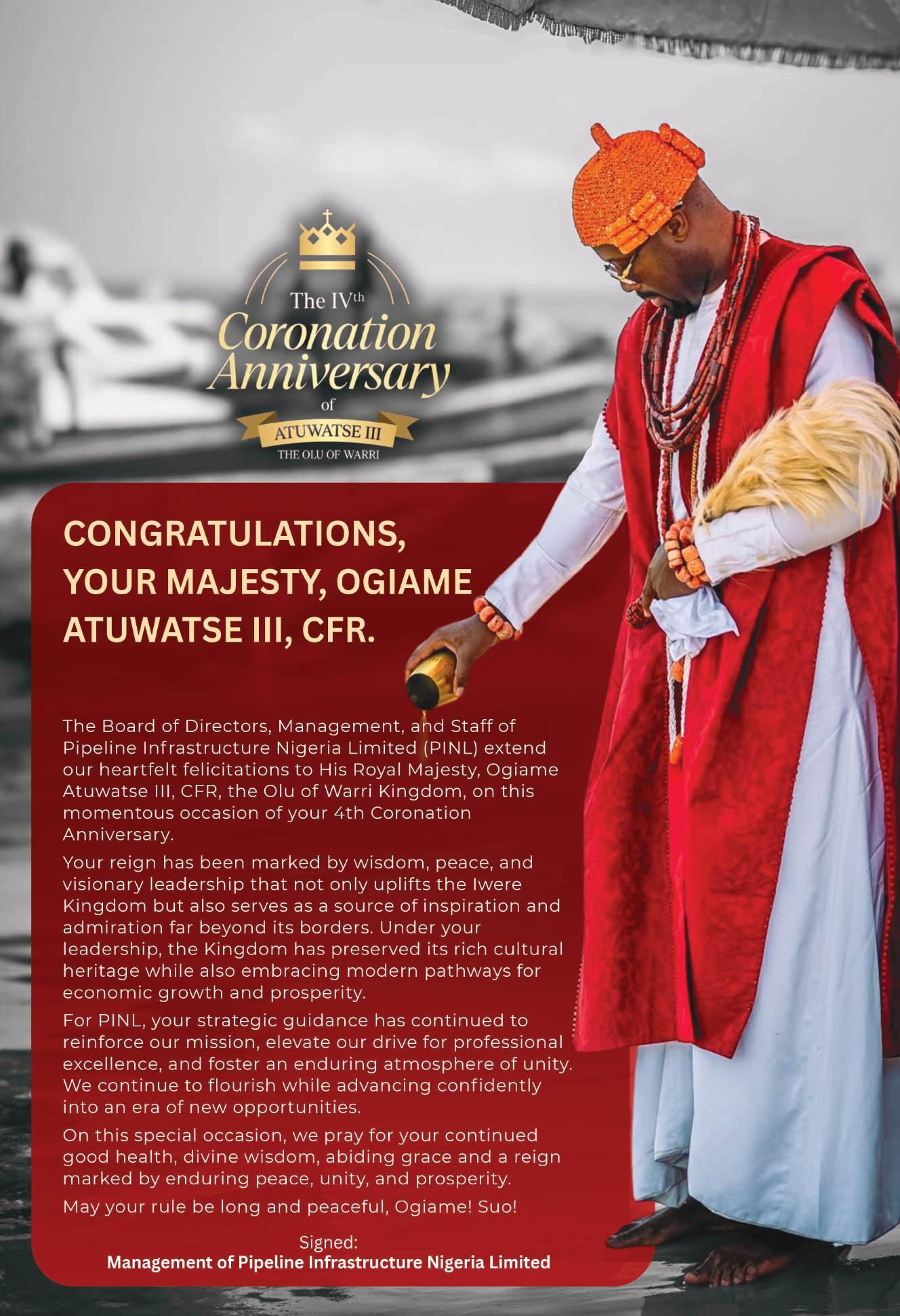 His Majesty, Ogiame Atuwatse III, the Olu of Warri Kingdom, and Her Majesty, Queen Consort of Warri Kingdom, Olori Atuwatse III, during Royal Boat Regatta in celebration of the monarch’s 4th Year Coronation Anniversary in Warri, yesterday