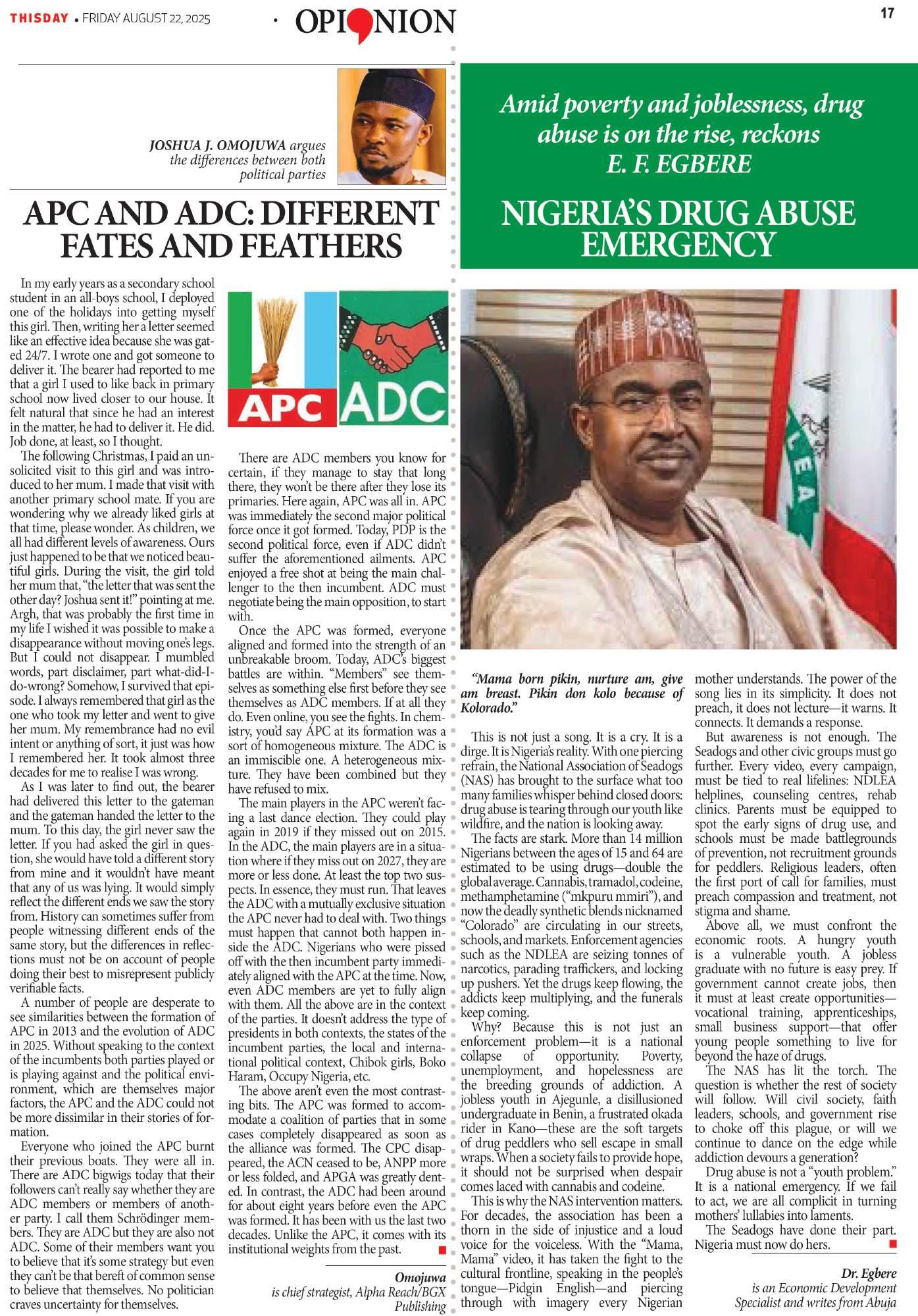 he was asked of his intention. He said he had three options. One was to run with Obasanjo, the other was to run with Alex Ekweme and the third was to run himself. It is fair to argue that the North has felt marginalized under Tinubu’s presidency, although I am not certain of the full basis for that claim. Im nonetheless gratified at this grudge. There is the need for all Nigerians to suffer the political dysfunction of the prevailing quasi unitary constitution. Like Buhari before him, the president has glaringly advertised the bane of over-centralisation of power at the centre.