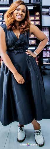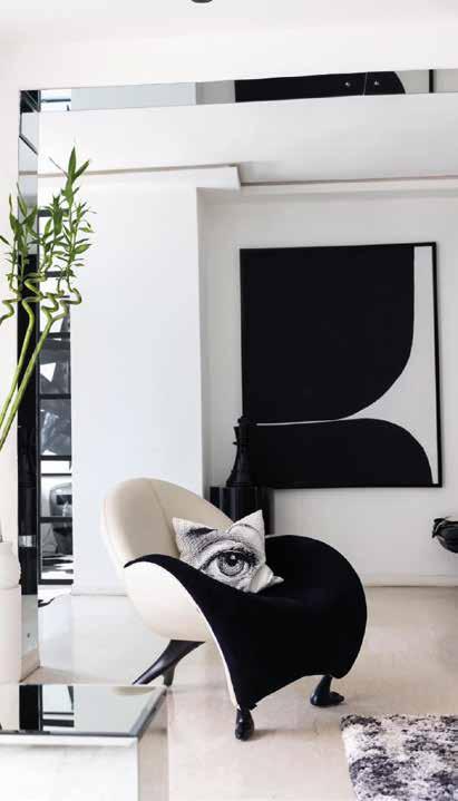 Yvonne’s fashion-forward approach to interior décor extends beyond her personal space. She has also created a stylish and functional workspace that is perfect for her creative endeavours. Her home office features a clean and sleek design with a blackand-white colour palette, complemented by modern furniture and unique decorative pieces that inspire her creativity.