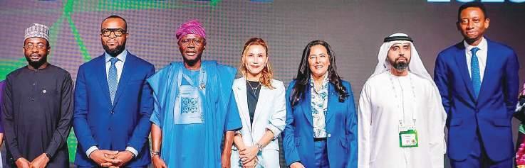 L-R: Director-General/CEO, National Information Technology Development Agency (NITDA), Dr. Kashifu Inuwa Abdullahi; Minister of Communications, Innovation and Digital Economy, Mr. Bosun Tijani; Governor of Lagos State, Mr. Babajide Sanwo-Olu; GITEX Global Organiser/CEO of Kaoun International, Trixie Lohmirmand; IFC Regional Director, Central and Anglophone West Africa, Dahlia Khalifa; UAE Consul General in Lagos, Mr. Salem Al Jaberi; and Commissioner of Innovation, Science and Technology, Lagos, Mr. Olatunbosun Alake, during the GITEX exhibition walkthrough and welcome address event, at the Eko Hotels and Suites, Victoria Island, Lagos, yesterday