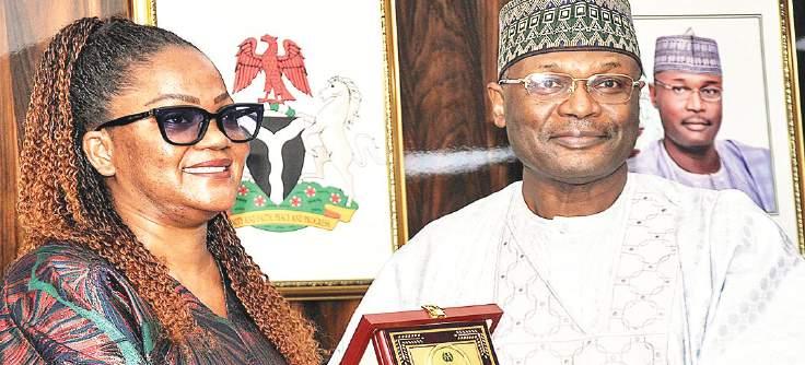 L-R: DG, National Identity Management Commission (NIMC), Engr. Dr. Abisoye Odusola, and INEC Chairman, Prof. Mahmood Yakubu, during a courtesy visit by the