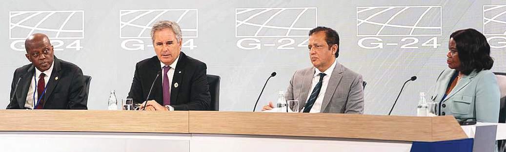 L-R: Governor, Central Bank of Nigeria (CBN), mr. olayemi Cardoso; G24 Chair and Secretary of finance at the ministry of economy, Argentina, Pablo Quirno; executive Director, State Bank of Pakistan, muhammed Ali malik, and Director, G-24 Secretariat, Iyabo masha, at the G24 press briefing at the ongoing Imf/World Bank Annual meetings in Washington DC…yesterday