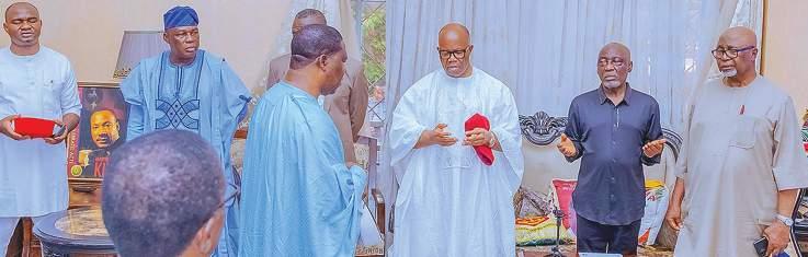 L-R: Chairman, APC Lagos, Pastor Cornelius Ojelabi; Ayangburen of Ikorodu, Oba Kabiru Shotobi; Secretary of the Governance Advisory Council, GAC, Alhaji Mutiu Are; Speaker, Lagos State House of Assembly, Rt. Hon. Mudashiru Obasa; former Governor of Lagos State, Mr. Akinwunmi Ambode; Governor Babajide Sanwo-Olu; GAC Leader, Prince Tajudeen Olusi; Deputy Governor, Dr. Obafemi Hamzat; his wife, Oluremi; Ex-Minister of Works and Housing, Mr. Babatunde Fashola, SAN; Senator Tokunbo Abiru; member of the Federal House of representatives, Hon. James Faleke and a party chieftain during the 2025 Lagos State All Progressives Congress, APC Stakeholders’ Forum, at the Eko Hotels and Suites, Victoria Island, ... yesterday