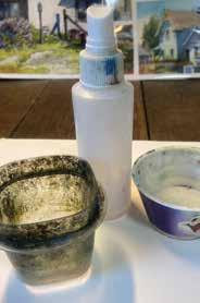 A small water container reduces soaking of the paper and increases pigment intensity. A small plastic spray bottle to pre-wet your palette, create wet washes, move and remove pigment.