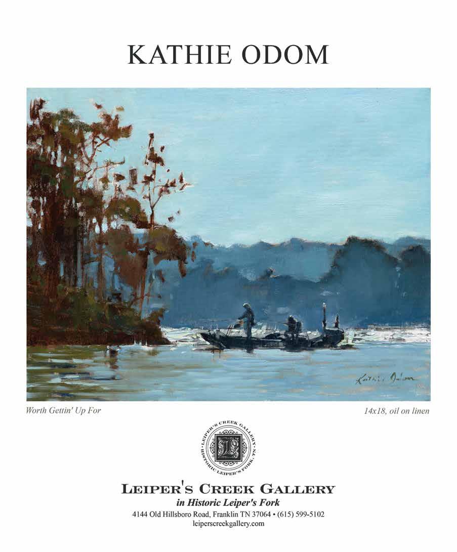 canvas, 24 x 24 in. My favorite painting location is Leiper’s Fork, TN, and its surrounding area. This location has everything — the perfect combination of bustling historic village charm and wide open bucolic spaces. Leiper’s Creek runs through the area, providing more interest.