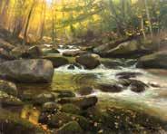Little River is one of my favorite places to paint in the Smokies. It winds along the Little River Gorge Road. This scene was painted early one morning, as the sun breached the mountain to light up the distant trees.