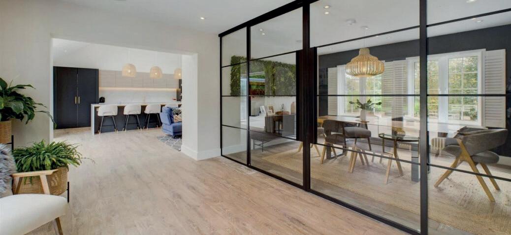 This magnificent Georgian style property stands in approximately 1 acre & was built by the present owners 14 years ago. Providing bright and spacious family accommodation. Surrounded by well manicured gardens running down to a stream and has the benefit of an all seasons tennis court. The property is located off a quiet country lane yet is only 10 minutes away from major schools and the town centre. The accommodation is approximately 6,500 sq ft and has spacious and elegant reception rooms, three bedroom suites and a one bedroom integral unit.