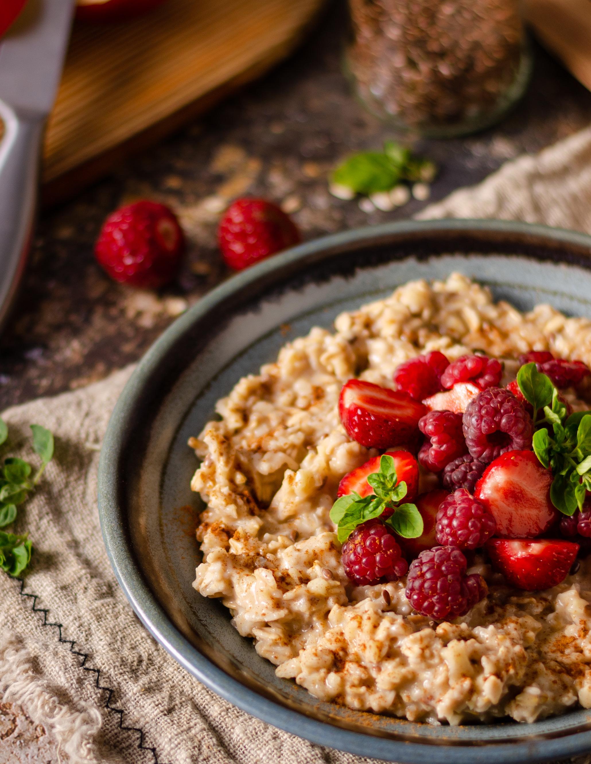Oatmeal is a fulfilling, hearty dish that can be revamped from plain oats to creative and delicious breakfast foods. There are many different types of oats that make up oatmeal, and many of them have different tastes and cooking times. Traditionally, oatmeal is cooked with water or milk on a stovetop. Oatmeal can also be baked or soaked in liquid overnight. The beauty of oatmeal is that it’s versatile and can be topped with a variety of toppings and mix-ins or be enjoyed as is.