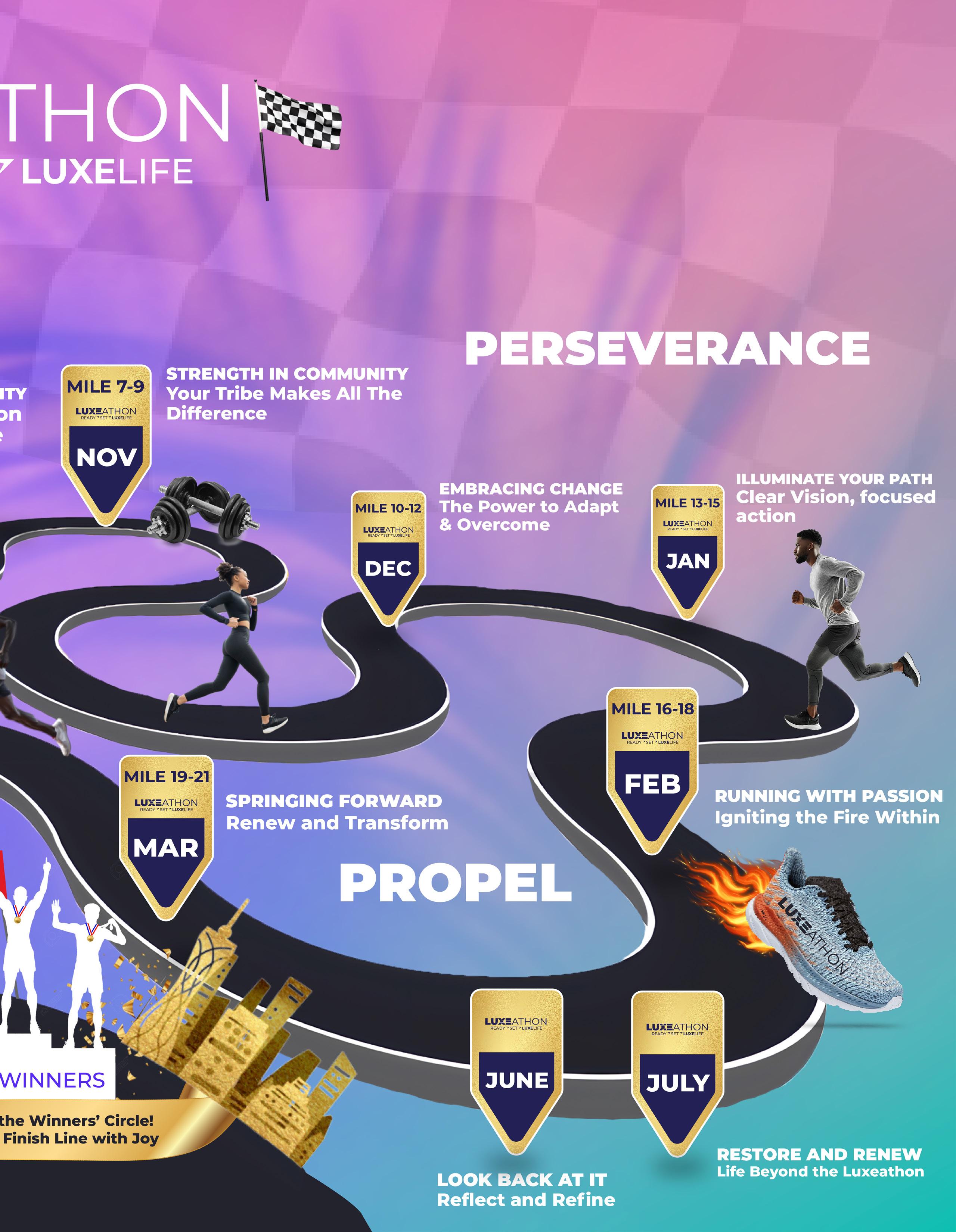 Just like athletes aim for gold medals in the Olympics, Luxeathoners set their sights on personal triumphs and crossing the finish line as champions. This theme embodies the essence of perseverance, resilience, and the unwavering pursuit of success as we approach the final stretch, miles 22-23.