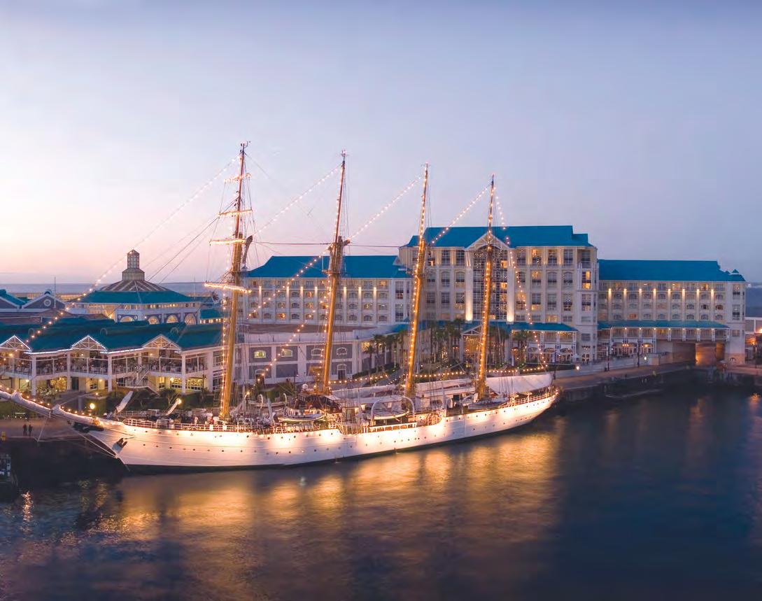 Close at hand are the Houses of Parliament. So too is the sensational Victoria & Alfred Waterfront, the lively happening centre of the city, with its boutiques, its fun and activities, the Two Oceans Aquarium, and countless great restaurants, from which you can watch the coming and going of the finest ships, cruise liners and ultra-luxurious yachts from every part of the world.