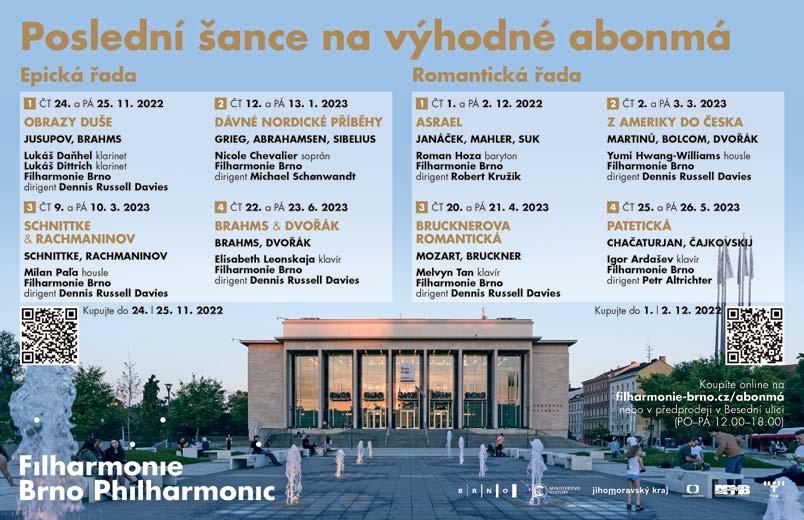 V JERUZALÉMĚ – část 1 –Z OBDOBÍ STARÉHO ZÁKONA přednáška Freskový sál Staré radnice, Radnická 8 18.00 BRNO KAM ← BRNO DNES 78 KAM v Brně… Vychází od roku 1957 | Číslo vydání: 10/2022 | MK ČR E 12197 | Vydává: TIC Brno, příspěvková organizace, Radnická 365/2, 602 00 Brno, www.ticbrno.cz | Dodává: Pocket media s.r.o., Jakubské nám. 644/3, 602 00 Brno | IČO: 04541227, DIČ: CZ-04541227 | e-mail: info@pocketmedia.cz | Redakce: redakce@pocketmedia.cz | Šéfredaktor: David Tieku | Editor: Filip Živný | Redakční okruh: Živný (živ), Bohdana Holešová, Radka Beránková (rb), Hana Drahokoupilová (hd), Bára Jurášková (jur), Tereza Holotíková (th), Miloš Henkrich (mh), Sylvie Poukarová (sp), Sabina Minářová (sam), Robin Smith (rs) | Jazyková korektura: Lucie Pokorná | Grafika a sazba: Jindřiška Mikešová, Kamila Hrubešová | Autor obálky: Adéla Wiederlechnerová | Inzerce: obchod@pocketmedia.cz | + 420 608 101 550, + 420 604 239 957 | Přetisk materiálů pouze se souhlasem redakce | Příští vydání vychází: 1. 11. 2022 | Cena pro předplatitele 39 Kč | FB a IG: @kamwhere | Anglické texty jsou vytvářeny ve spolupráci s Robinem Smithem, Ritou Deanovou, Brno Daily a Brno Expat Centre | REDAKCE NENESE ODPOVĚDNOST ZA OBSAHOVOU SPRÁVNOST MATERIÁLŮ A INFORMACÍ, ZMĚNY PROGRAMŮ A REKLAM | Předplatné: info@pocketmedia.cz / shop.pocketmedia.cz