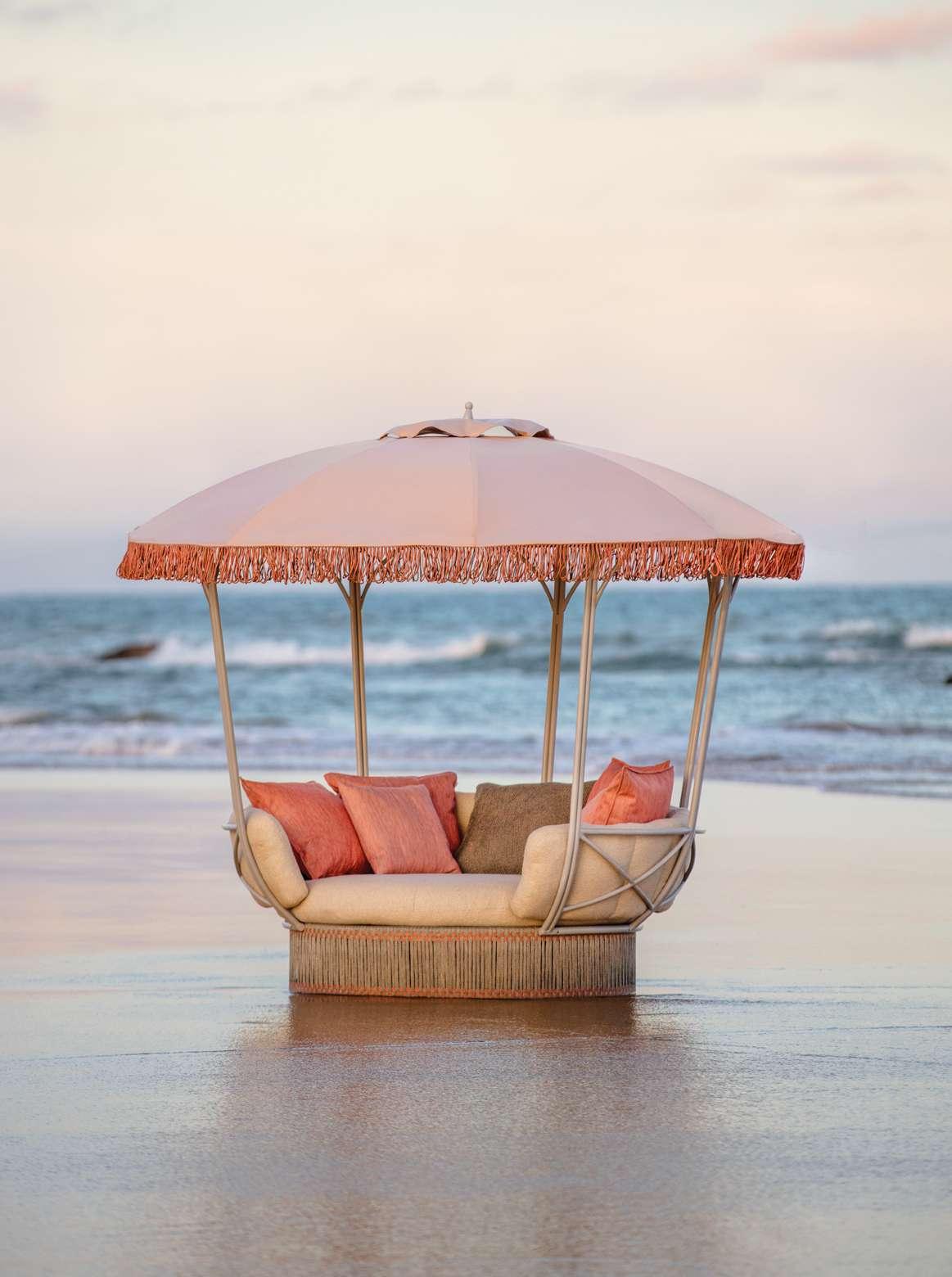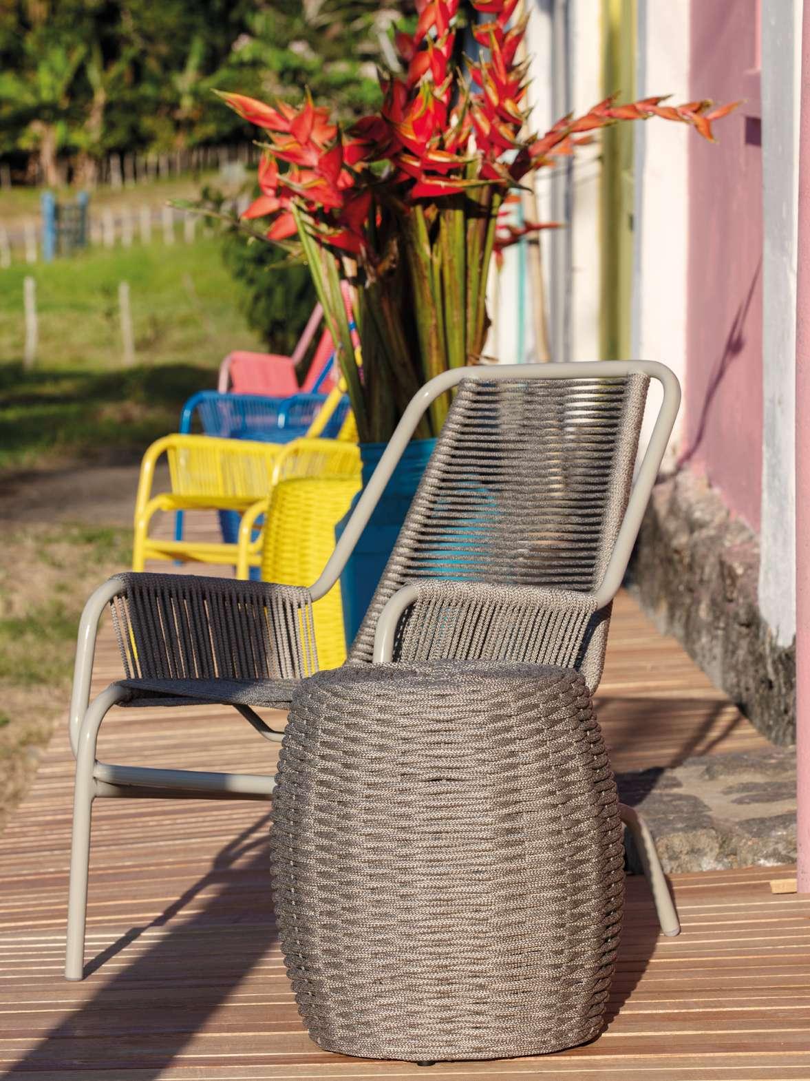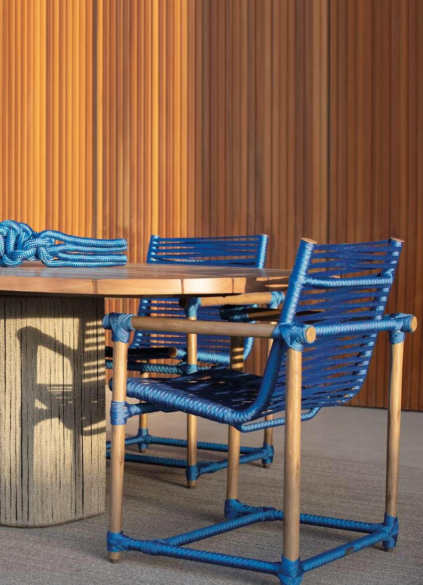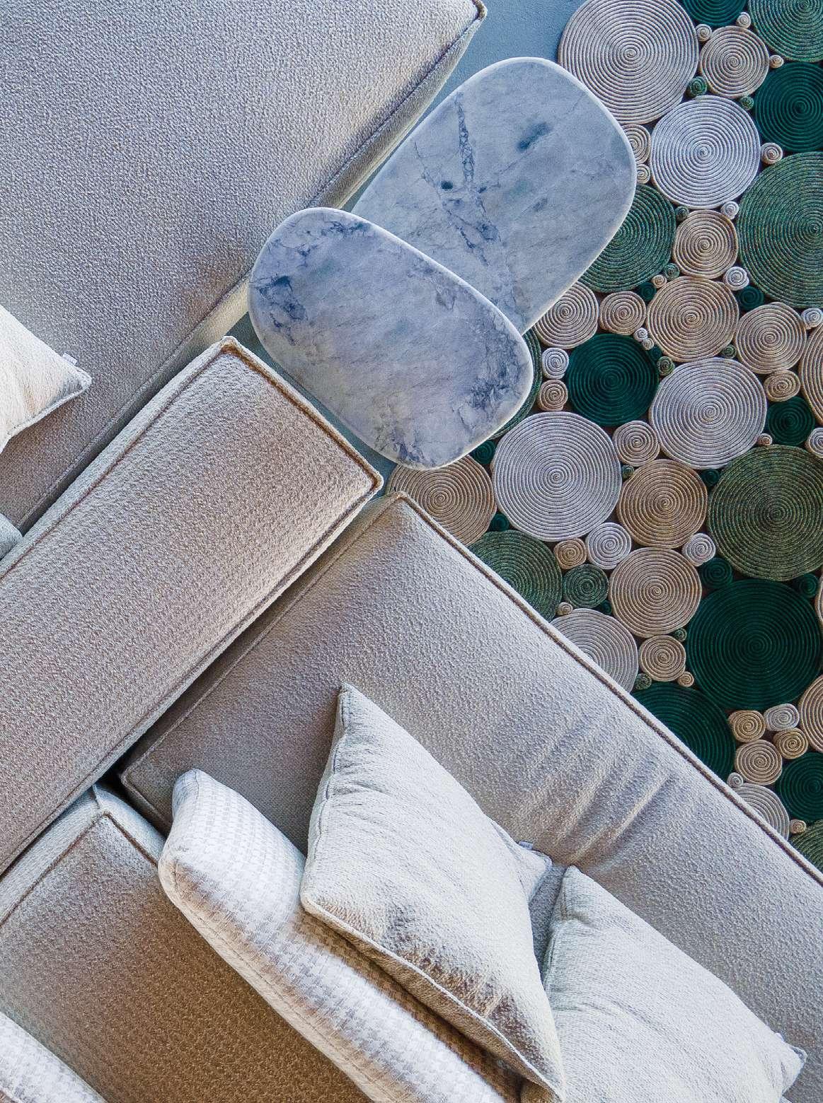 Módulos, braços e encostos Split, mesa de centro Marina, banco redondo IOS, mesas auxiliares, dupla e tripa Slim, tapete Cloud, namoradeira balanço Fusion, lanternas Club, luminárias Balão, pendentes Cônico, Cesta, Cilindro e Maui, Vasos, acessórios, mesa Pucon e cadeiras Padang.