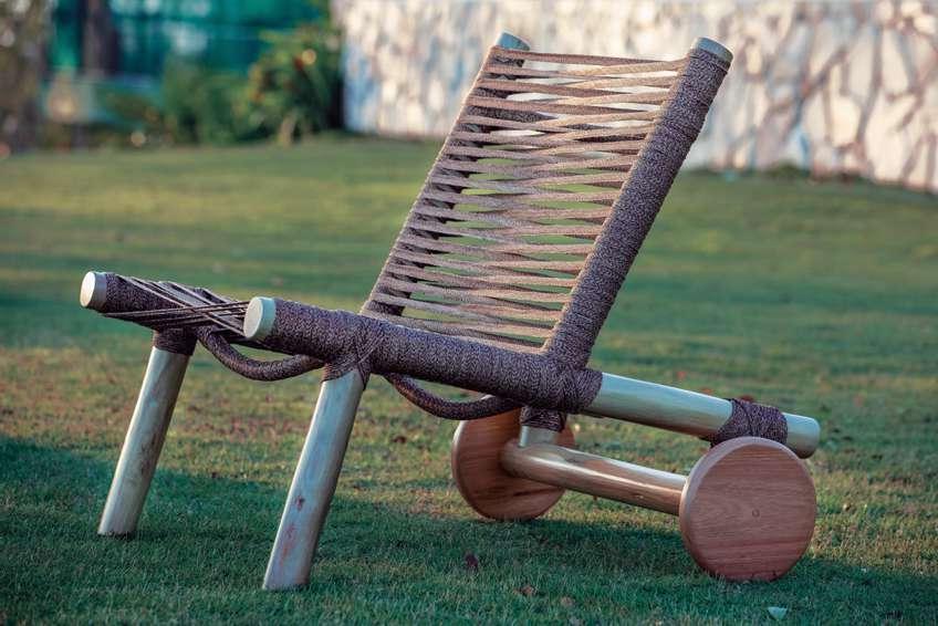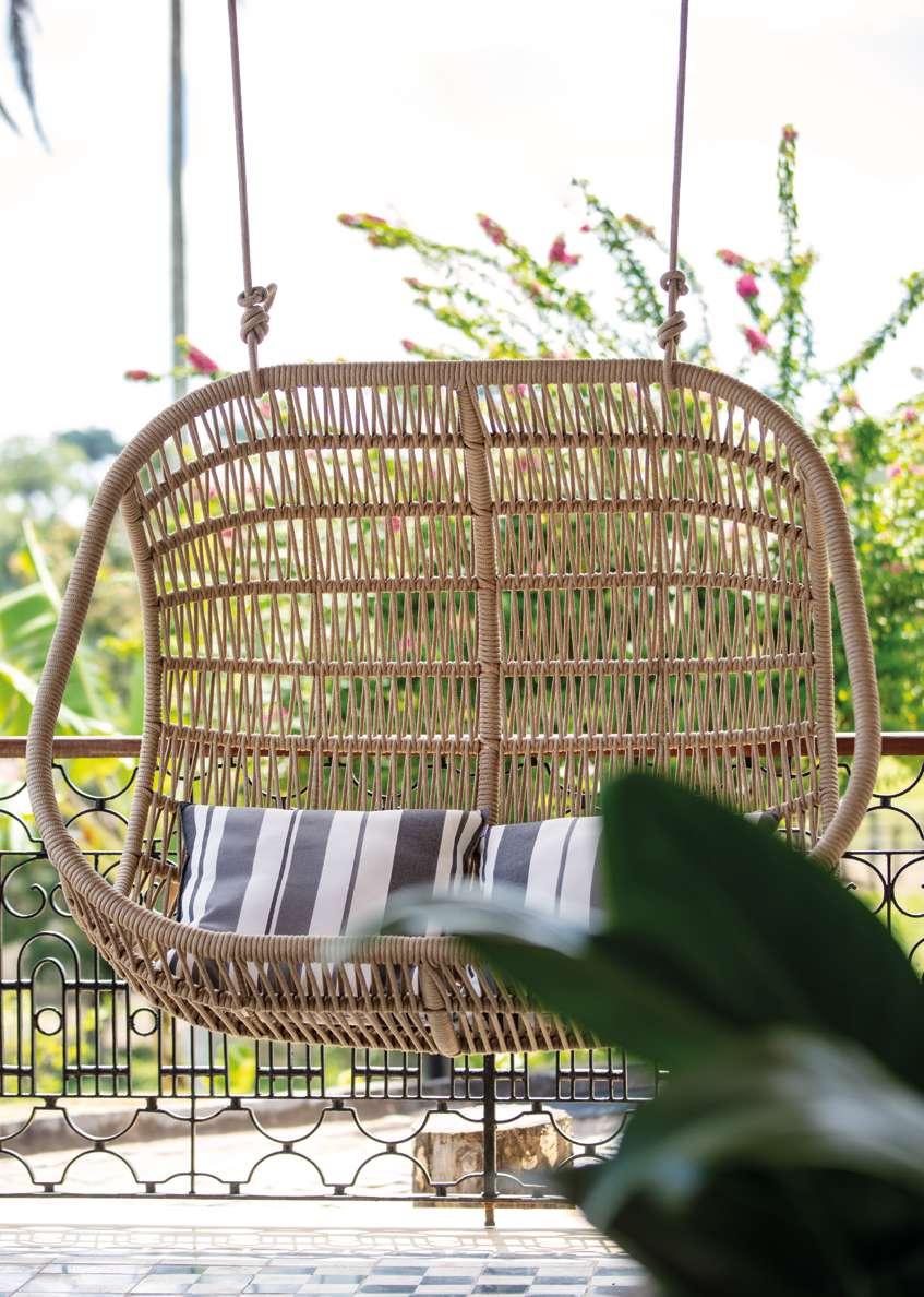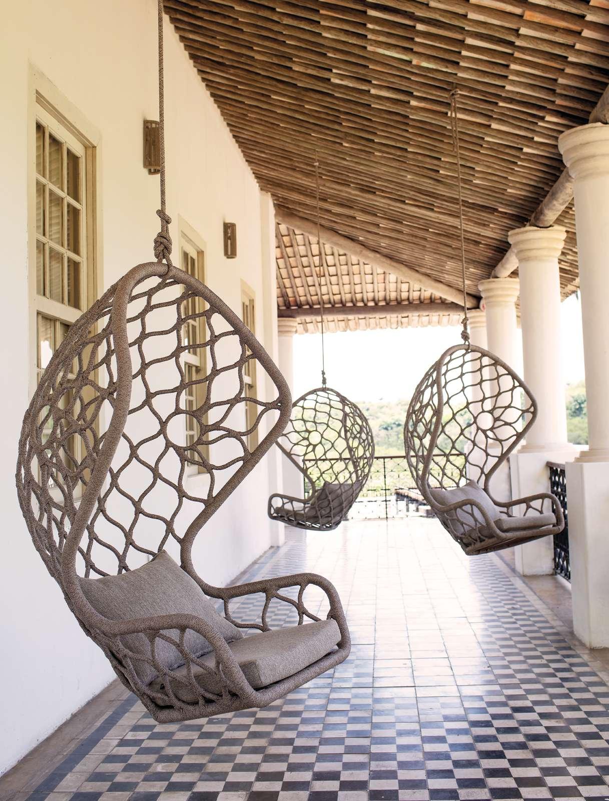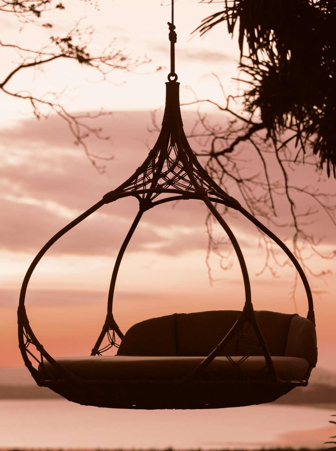 Tulum lounge chairs, Spool stool, floor light fixture, Maui planter, Kauai double swing, Spool coffee table, Marina ottoman and garden seat and Kauai light pendant.
