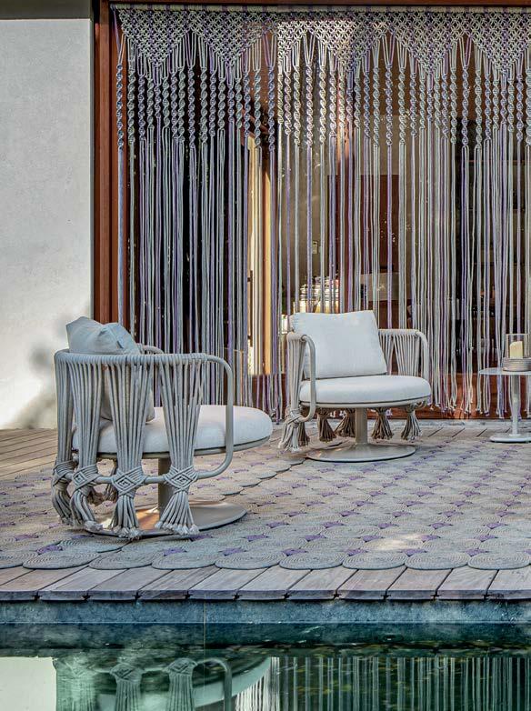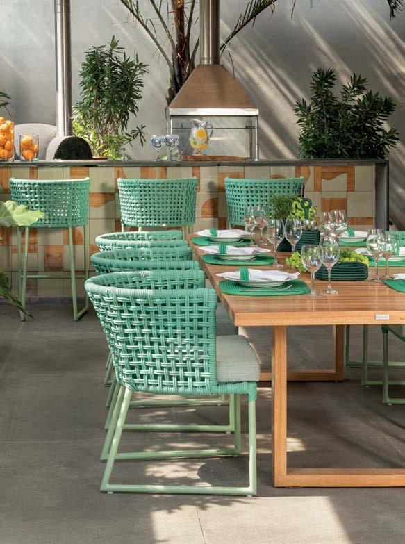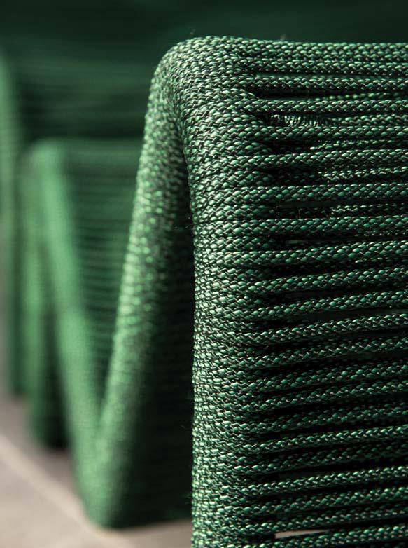 6388 - CHAISE DE CASAL Amado Double Chaise 6301 - POLTRONA Amado Lounge Chair® 6310 - BANCO Amado Stool 6316 - POLTRONA BALANÇO Amado Rocking Chair BANQUETA Amado Bar Stool 6377 - CADEIRA COM BRAÇO Amado Armchair 6307 - CADEIRA Amado Chair ESTRUTURA Alumínio FRAMES Aluminum Corda náutica AMADO Design by: Alfio LisiAcompanha 2 almofadas de 60x50cm. Metragem total: 1,8m. Includes 2 Pillows 23.5” x 19.75” Total: 1,96