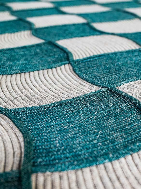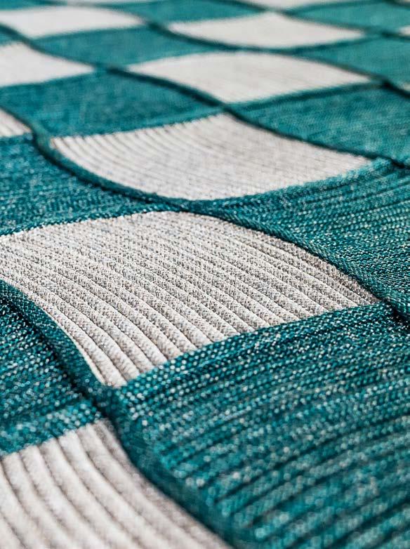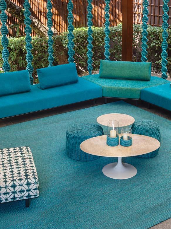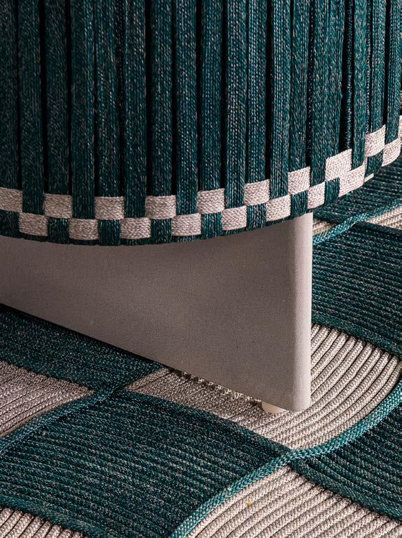 Each cabinet features unique patterns and textures that mimic the ebb and flow of the waves, and the marble inlays add a touch of sophistication and luxury. The rugs feature a new handmade knitting technique developed with Tidelli craftsman specifically for this collection.