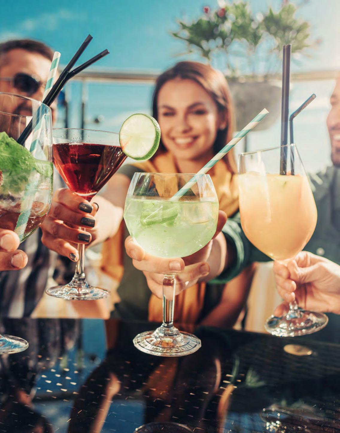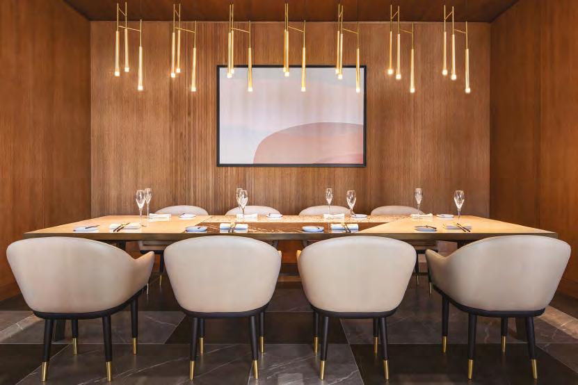 Varje säte har en power cash, det vill säga ett utfällbart bord med ett mindre cocktailbord på sidan. Här njuter vi av en tre rätters middag 12000 meter upp i luften. Dryckesmenyn består av allt från ovan nämnda champagne till ett brett urval av cocktails, fina viner och olika spritdrycker som man har fri tillgång till under flygresan. När det gäller måltiden så serverades vi bland annat en traditionell arabisk mezze på vårt flyg till Dubai. Emirates kockar brukar erbjuda regionala rätter, specifika för själva resmålet för att ge passagerna en försmak av destination innan landning.