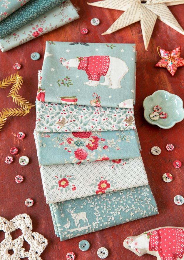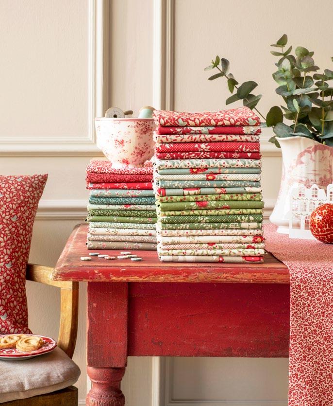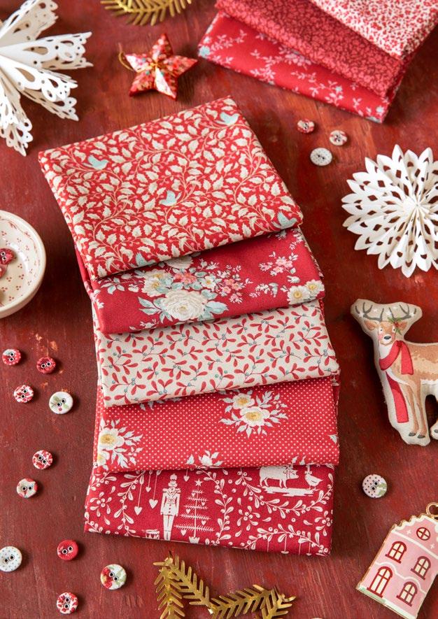 The next pages feature a selection of basic collections that we have picked to accompany the Merry Little Christmas fabrics in quilts, pillows and stockings.