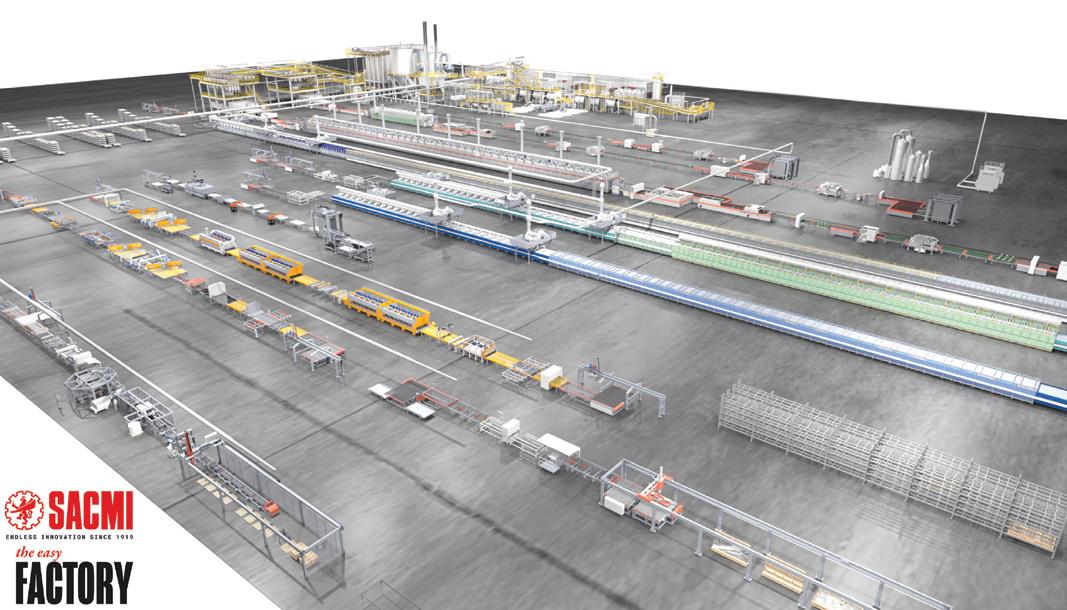 Productivity, control and eco-friendly design are the three guiding principles behind Sacmi’s new “easy factory” concept showcased at Tecna 2024, the international exhibition of technologies and supplies for surfaces (Rimini Expo Centre, 24-27 September). As always, Sacmi will welcome visitors to Booth B1, where they can view machinery and watch live demos for the entire duration of the show. Sacmi’s “easy factory” concept combines powerful, high-performance machines with automation and digital controls throughout the entire production process, from body preparation to logistics. It also in-corporates innovative thermal processes that support the industry’s climate-neutral goals. This approach achieves a per-fect balance between environmental sustainability, productivity and high quality, freeing up resources for increasingly ambitious projects.