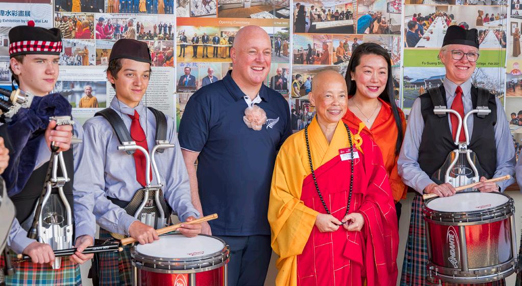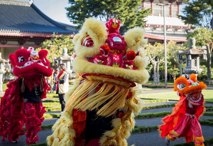 chanting the Heart Sutra and reciting the Prayer for World Peace, and featured performances including of a lion dance, a Scottish pipe band, the Māori traditional dance Poi E and a Dunhuang Dance by the Temple’s Children’s Dharma Class.