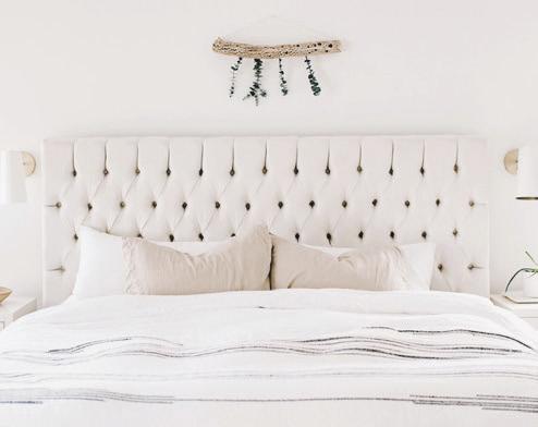 Headboards can be a fun way of incorporating a fabulous accent fabric or to add texture and depth with natural linen, woven plains, or subtle self-patterns.