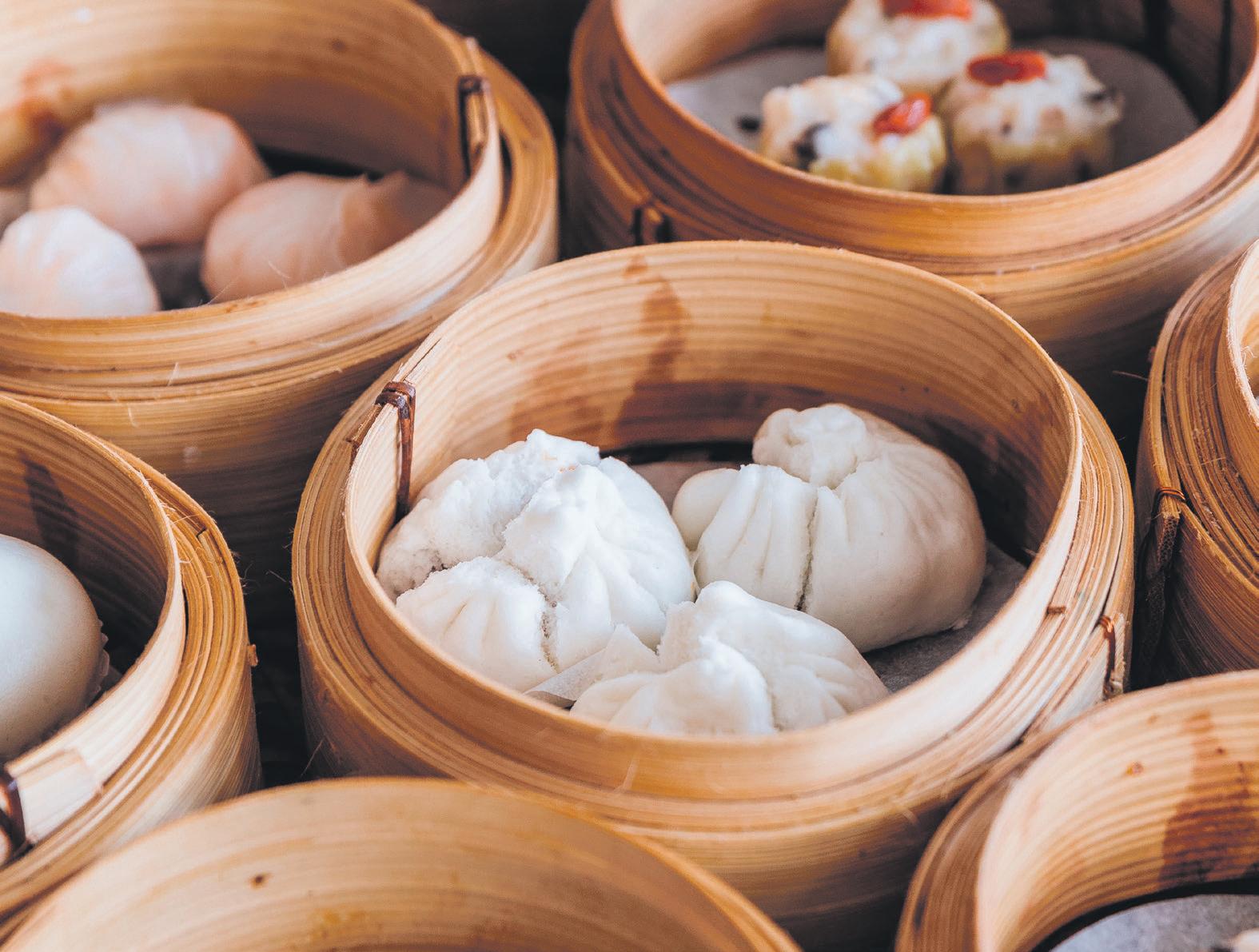 Tucked away at 298 Ti Rakau Drive, this 200-seater is lled with hungry locals and tourists that arrive in busloads. The service is brisk as the waiting sta place a rectangular card on the edge of the table to tick o the small dishes ordered, and the number of people seated at the table. The sta work with e ciency as they have a kitchen-to-table-trolley laden with freshly made, fried and steamed dumplings. You can request them to li the lid of the bamboo steamers to have a peek at what lies beneath.