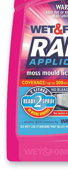 As we head into autumn and winter, it becomes harder to forget about moss and mould. But, thanks to Wet & Forget’s Rapid Application Moss Mould Remover, we can quickly put pay to them both. Armed with a rapid application nozzle, this e cient product can cover large areas and hard-to-reach spots. We have bottles for THREE lucky readers.